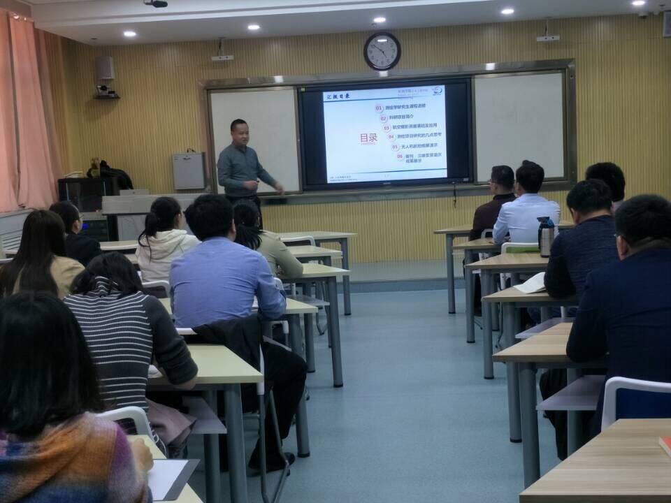 余宏远教师的报告主要围绕工程测量课程进修学习心得、GIS在学校虚拟校园建设项目中应用研究、航空摄影测绘基础及其在工程中应用等问题作了汇报。