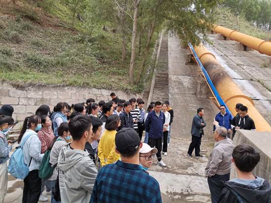 在洪水河管理处工程技术人员的带领下,学院师生一行先后对在建的山城河水库、灌区田间配套工程;己建的河道治理项目、高崖头水电站、双树寺水库、混凝土预制厂、益民灌溉试验站等项目进行了实地认知。